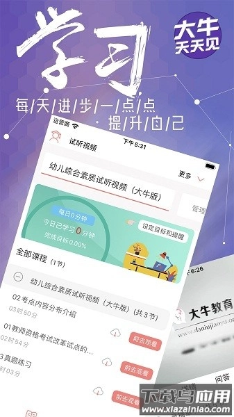 大牛网校是一款聚焦成人高考与自考学习的移动平台,它整合了各类职业考试所需的学习资源,涵盖历年真题和模拟题库,用户能随时练习来熟悉考试形式;此外还具备课件视频功能,支持离线观看,便于学员自主规划学习进度。