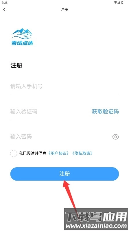 2、进入注册页面,填写手机号码并获取验证码,设置登录密码,勾选同意相关协议后,即可完成账号注册。