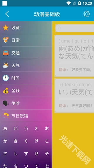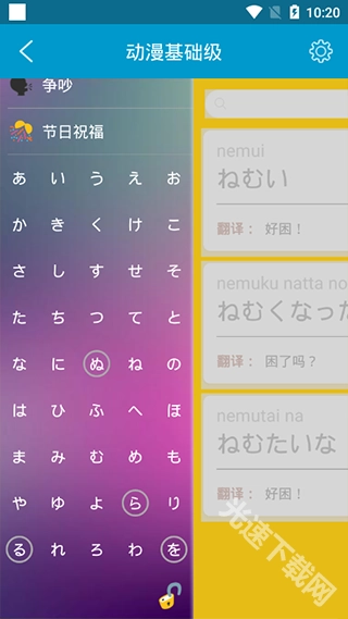 这个版本所配备的词库包含:日语经典短句、动漫漫画日语会话极短句(共800句)