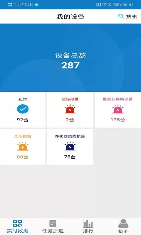 3、首页地图用不同颜色标注监测点状态;