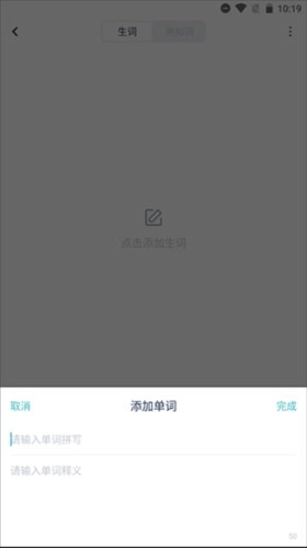 4、进入添加单词的界面,输入单词的拼写和释义,然后点击【完成】按钮。