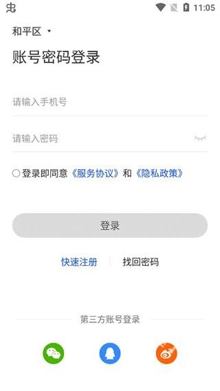2、接着输入手机号、密码进行登录,没有注册的用户可先进行注册;