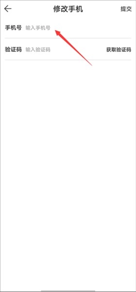 3、进入手机修改页面,输入号码与验证码后,点击提交按钮就能完成绑定操作。