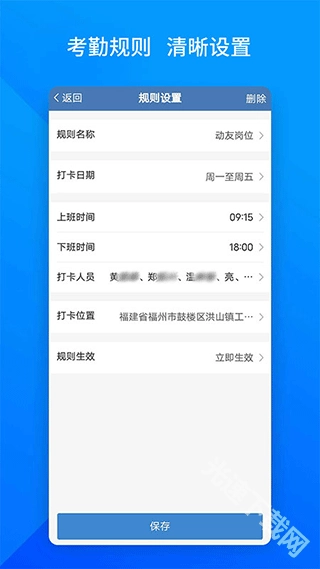 你只需创建团队、添加成员并设置时钟规则,就能随时进行打卡操作。
