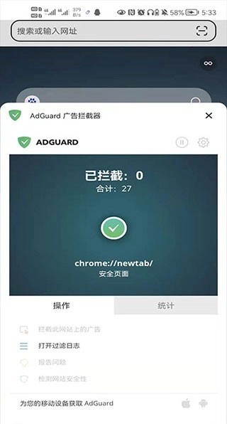 5、接着打开ADGUARD广告拦截器,就能便捷地阻挡网页里的广告。