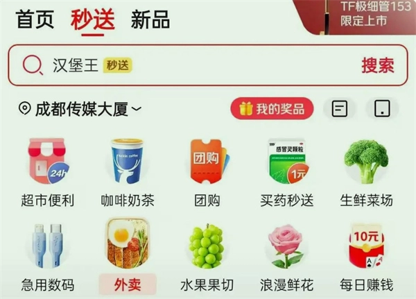 特别说明:京东外卖于京东首页当中,京东推出“秒送”频道,并设置了外卖功能入口,咖啡、奶茶、品牌连锁餐饮等陆续上线。