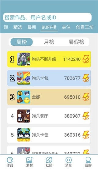 4、游戏内设有周榜、月榜、暑假榜等多种热门榜单,你可以通过这些榜单查看其他玩家创作的优秀游戏作品。