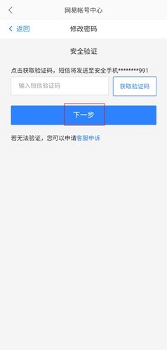 7、获取验证码,输入短信验证码,点击下一步按钮。