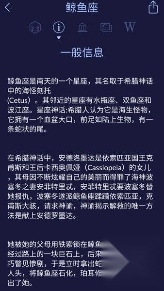 识别头上的星座后,可以在软件中点击查看该星座的相关信息和照片库。