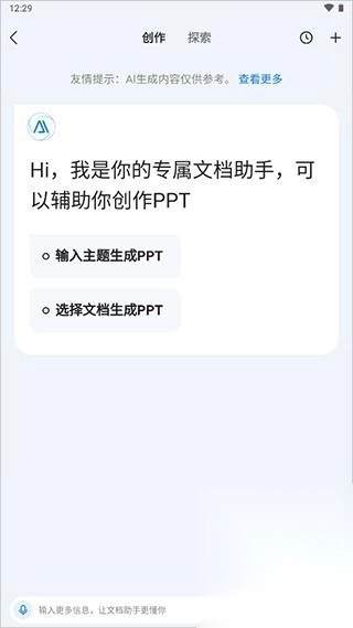 3、创作:本软件还提供ai智能创作功能,输入您的要求即可生成相应的内容。
