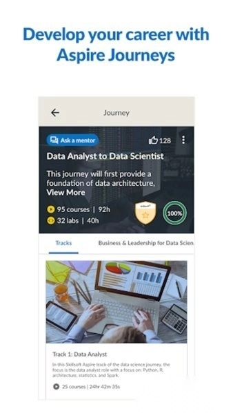 完成指定课程后能解锁专属徽章,这些成就会展示在个人社交档案里;智能算法依据用户学习习惯推送定制化内容,精准契合学习需求;平台配备ASPIRE学习路径功能,借助系统化课程规划获取渐进式成长体验;资源库不断更新,目前18万+课程视频与有声内容每月都有优质资源新增。