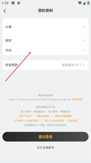 2、在“我的资料”页面,找到“手机”选项并点击。