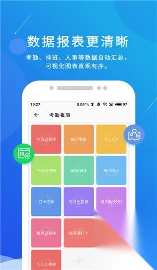 2、员工考勤智能显示:员工考勤列表、迟到列表等,随时查看,使员工的管理更加高效。