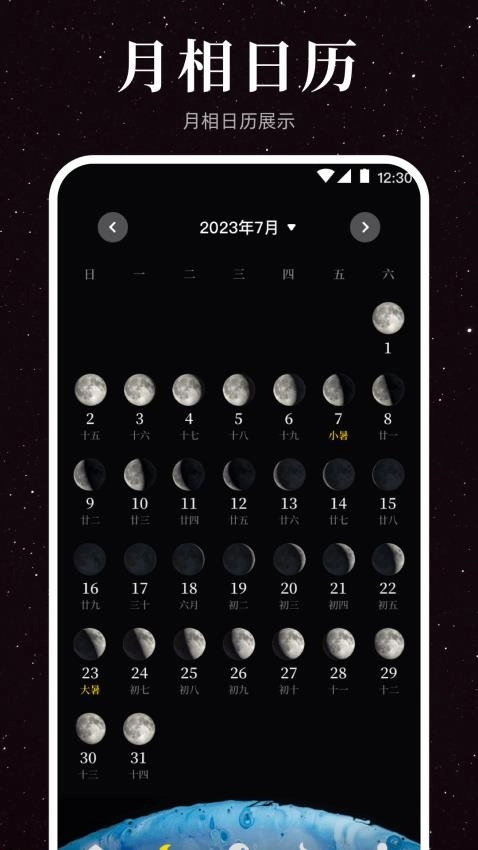 你可以在“月相日历”中获取不同日期的月相;