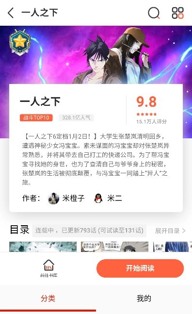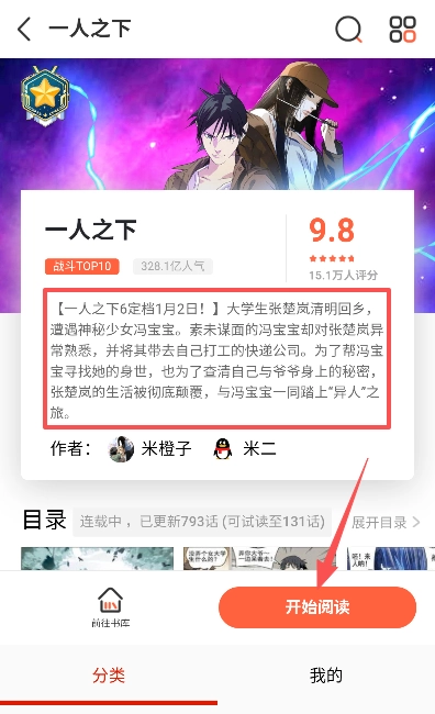 3、可以先浏览漫画的简介,再点击“开始阅读”按钮。