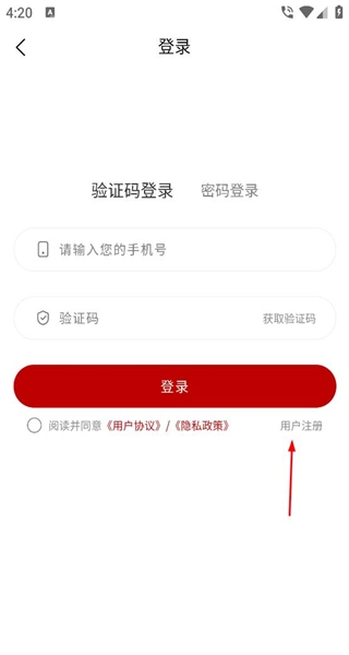 3、进入登录界面后,可选择验证码登录或密码登录两种方式,按要求填写相关信息并勾选协议,随后点击登录按钮即可完成登录操作。