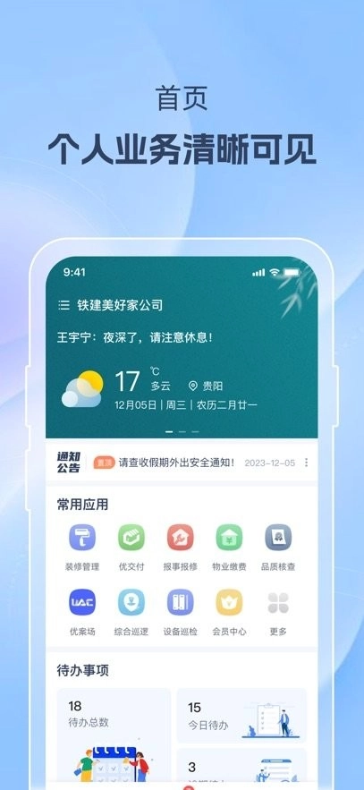 铁建美好家管家端是中铁建打造的服务平台,旨在更优质地为业主提供服务,涵盖访客登记、活动查看、报事报修、承建商协同等多项功能。