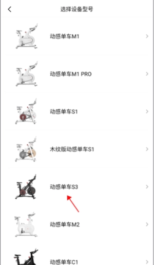 2、点击添加设备后,系统会呈现出可连接的运动器材清单,从中选择单车这一选项。