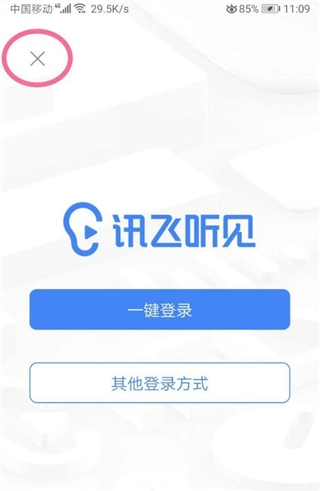1、打开手机桌面点击【讯飞听见】图标2、进入之后在登录页面点击【关闭】按钮