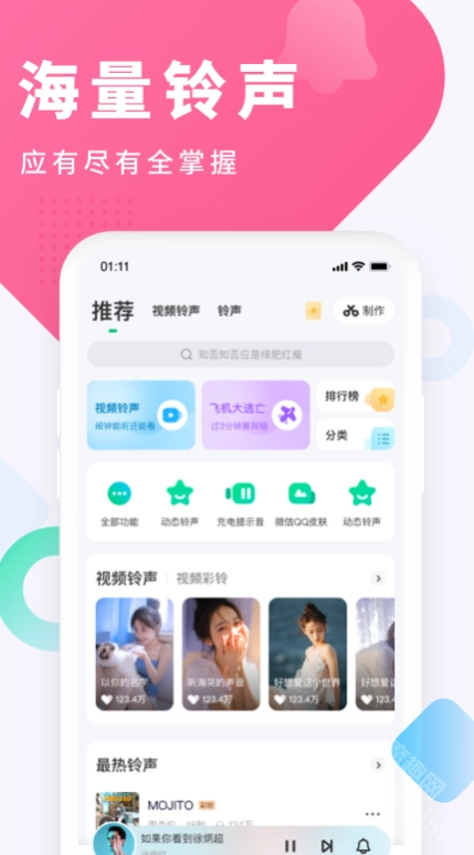 热门推荐:热门铃声实时更新,紧跟流行潮流,网罗各类热门铃声。