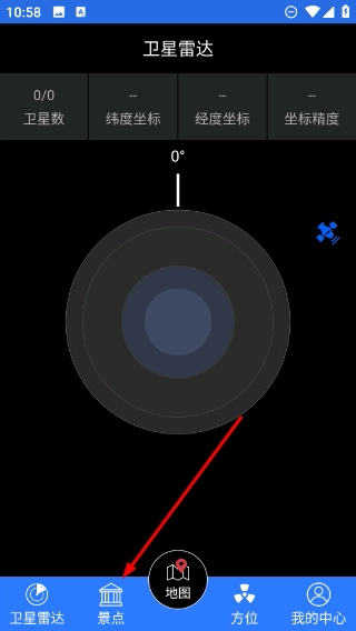 1、进入【卫星雷达】页面后,点击底部的【景点】按钮,即可切换到与景点相关的功能界面。