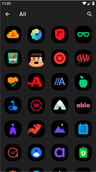 这款应用的整体设计风格简约大气,界面干净清爽且没有广告打扰。用户能根据自己的喜好,轻松把默认图标换成整套黑色系或暗色主题图标,以此打造个性化的桌面布局。