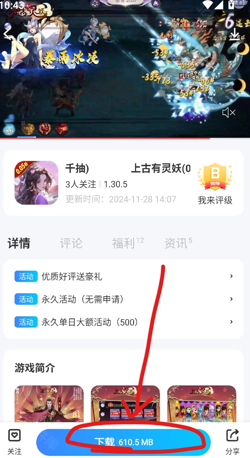 3、浏览完游戏详情后,要是对这款游戏感兴趣,就点击页面底部的按钮,耐心等待操作完成