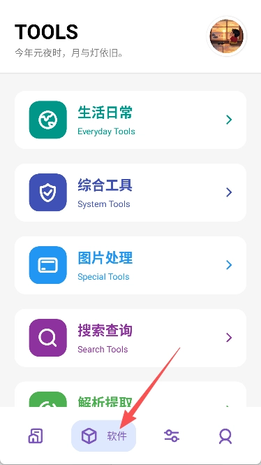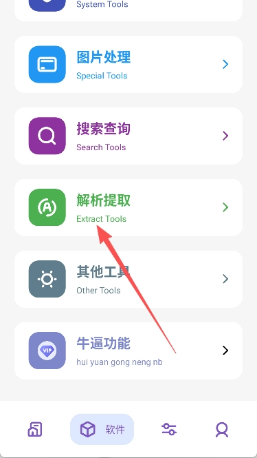2、点击下方导航栏里的“软件”选项,即可进入工具中心。