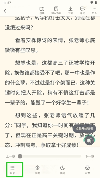 2、进入小说页面后,点击小说中间的屏幕,就会弹出工具栏。