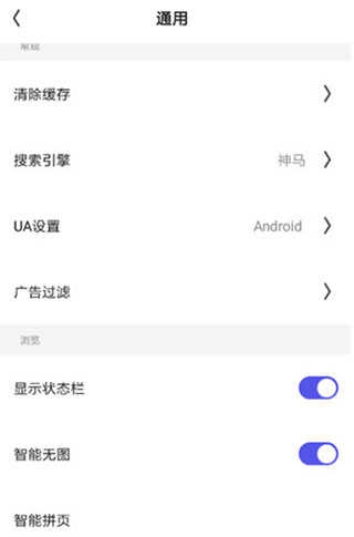3、进入“通用”界面后,点击开启“智能无图”功能,开启后就能用阅读模式浏览网页了。