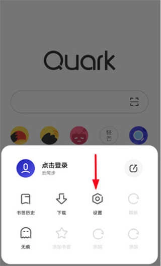 1、打开夸克浏览器的主界面后,找到右下角的横杠图标并点击,接着在弹出的选项列表里选择“设置”这一项。