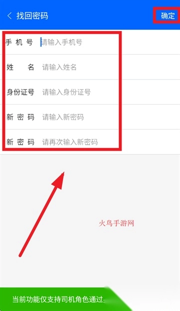 请填写注册时使用的手机号、姓名和身份证号,设置好新密码后点击确定,就能完成密码重置操作。