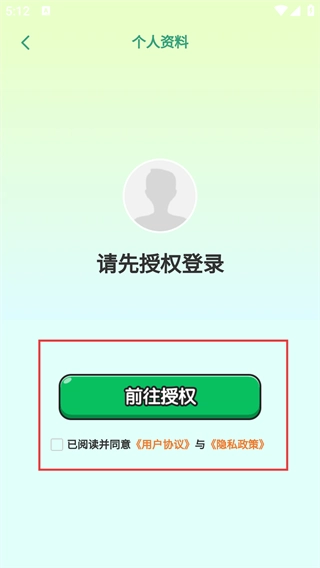在个人资料页面,先勾选“已阅读并同意”相关协议,接着点击【前往授权】按钮,就能进入账号授权登录的流程了。