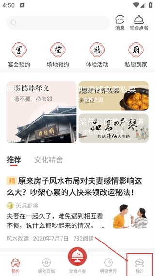 2、进入主界面后,底部导航栏有【我的】入口,点击该入口就能进入个人中心;此外,主界面还包含宴会预约、场地预约等功能板块。