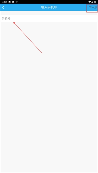 3、进入【输入手机号】页面后,准确填写所需的手机号信息,接着点击页面右上角的【下一步】按钮,以此来继续完成注册或验证的流程。