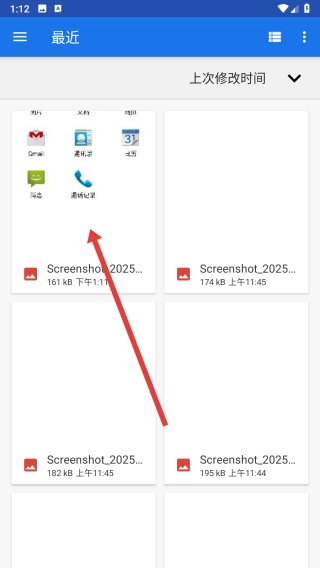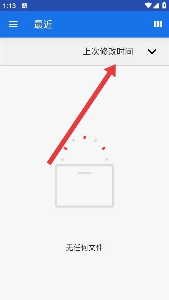 1、在最近页面中,点击上次修改时间旁边的下拉箭头,就能依据文件的修改时间来筛选并展示自己的内容。