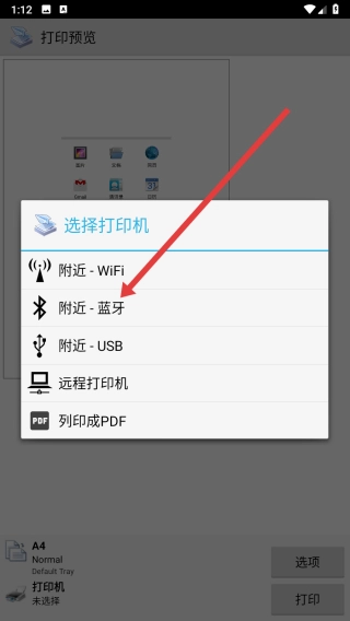 4、在打印机选择界面里,能够借助蓝牙连接的方式,利用周边的打印机来完成打印操作。