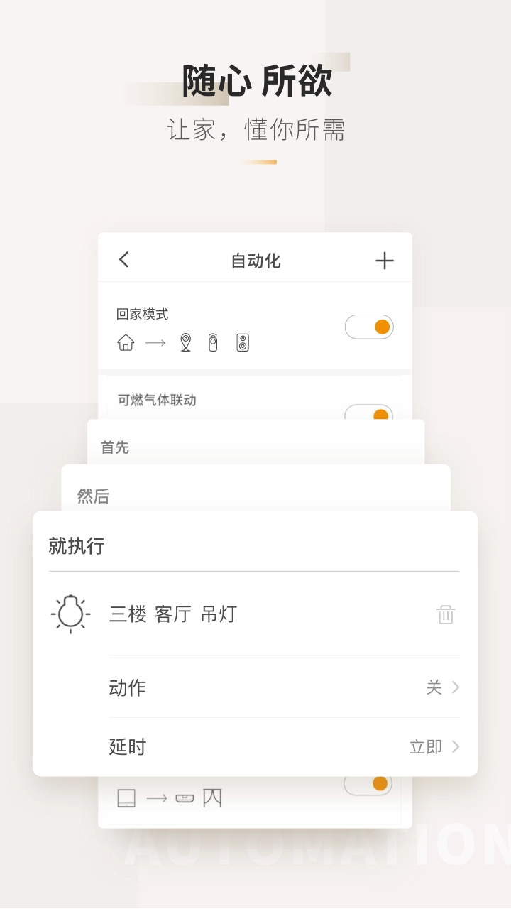 - 多样的场景设置功能,用户能够依据不同的生活场景,预先设置多种自动化控制方案,既节省时间又节省精力。