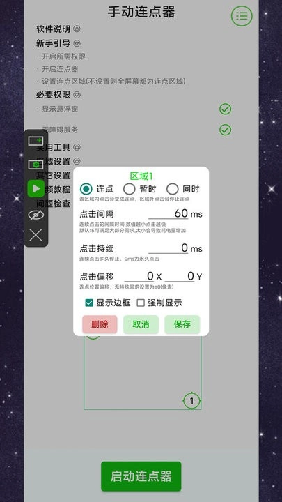 手动连点器是一款专为安卓手机设计的手动连点工具,适合那些需要频繁调整连点位置的游戏与应用,在连点器类软件中属于具备特殊用途的类型。
