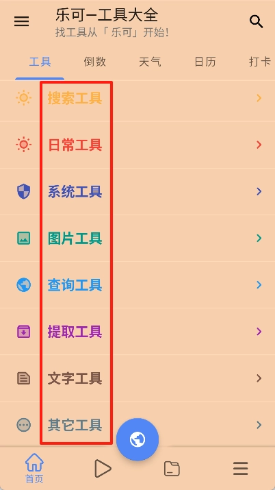 乐可工具箱是一款整合了大量实用工具的手机应用,仿佛把手机变成了哆啦A梦的“百宝袋”。日常生活中遇到难题时,我们可以借助里面的工具轻松化解各种麻烦。例如需要提取网页图片时,打开工具箱里的网页图片提取功能就能解决。这款工具箱不仅功能多样,还对所有工具做了细致分类,方便我们快速定位所需的小工具。另外,软件内还提供天气和日历服务,让我们能清楚知晓当天乃至未来的天气情况,使用起来确实非常便捷!