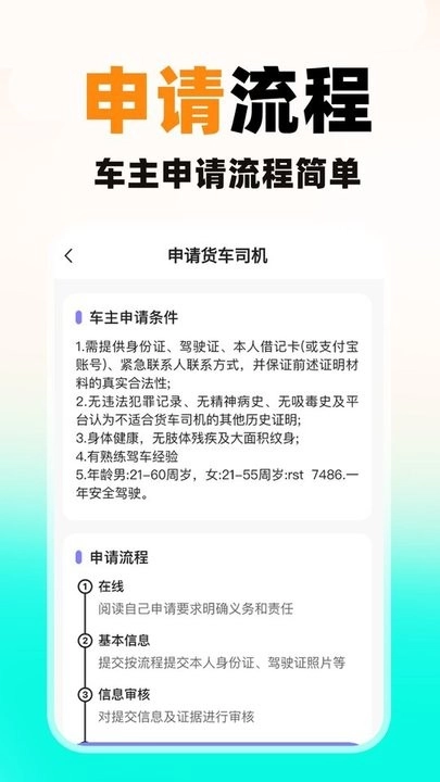 货车送货司机是一款为货车司机和货车发货打造的全方位出行助手,能提供快捷注册的综合服务,助力司机简化注册流程。