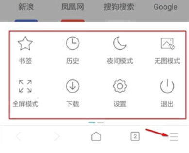 4. 点击右下角的【三条杠】图标,展开菜单后,就能访问书签、历史记录等功能选项了。