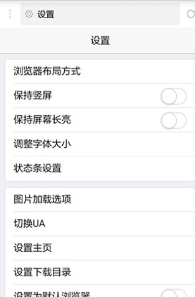 7. 在设置选项里,能够对浏览器布局、屏幕方向、屏幕亮度、字体大小等各项配置进行调整。