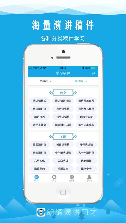 1、朗诵演讲口才提供各类稿件学习内容,能够更好地满足客户不同的学习需求。