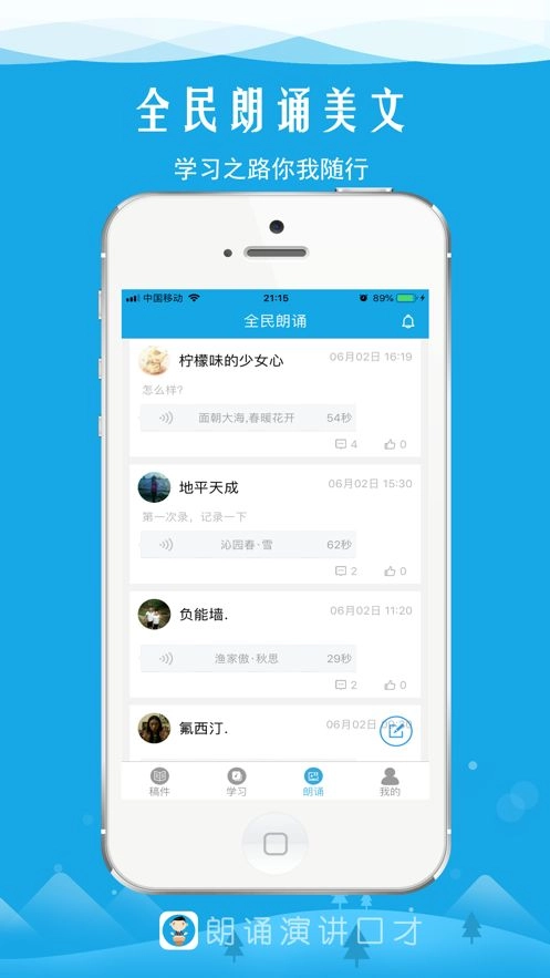 1、为用户提供全民朗诵美文练习平台,在这里你能听到更多人的朗诵声音
