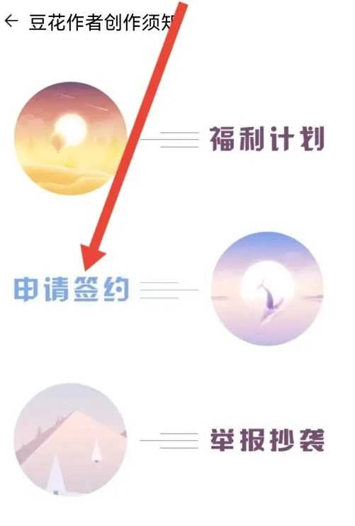 进入豆花作者创作须知,点击【申请签约】。