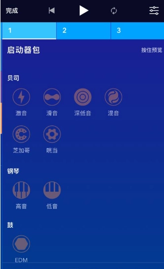 Medly会把您的歌曲拆分成段落,您能轻松地对这些段落进行选取、移动、删除、复制,还能把它们连接起来制作循环。之后您可以对各个段落加以整理,利用多达24种乐器轨道来创作出史诗级的音乐。