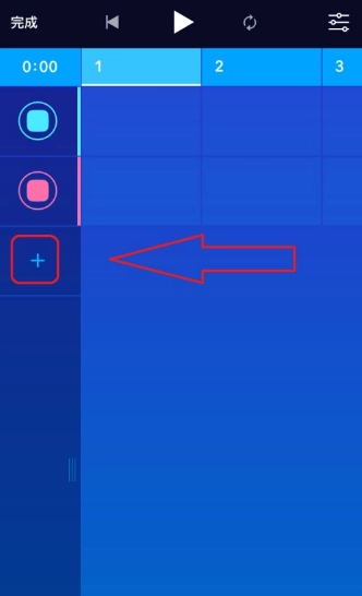 进入歌曲界面后,我们可以点击下方的加号按钮来添加一条新的叠复轨。上方的单个格子对应着10帧的时长。
