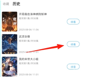 4.点击续看可接着上次的内容继续播放