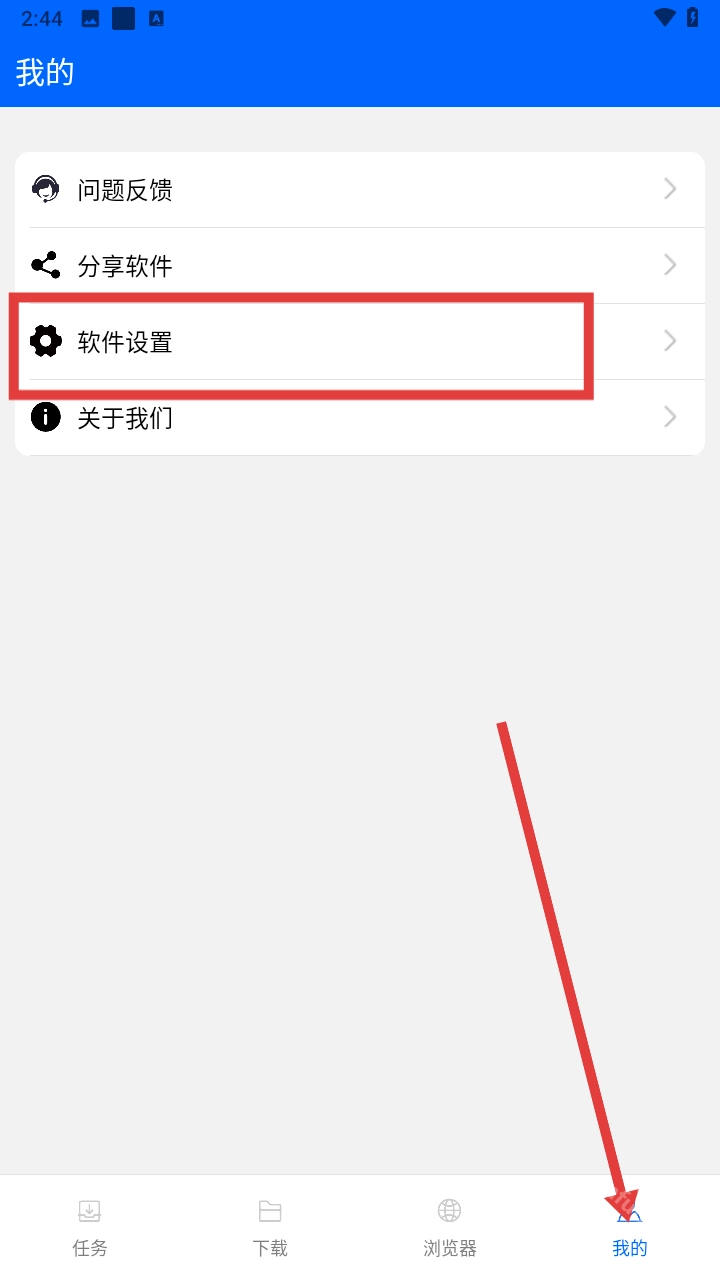 1、进入穿云后点击我的,选择软件设置